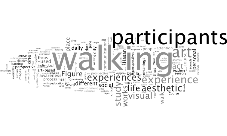 If life is akin to walking, as the folk poet Aşık Veysel suggests, walking can arguably be a useful tool for making sense of life-art practices. The present study examines the relationship between the setting in which a daily practice takes place (as a physical environment within a social context), and the subject and process behind the aesthetic experience, in the context of the boundary between art and education. What separates walking as an art form from walking as a daily life experience? Exploring the intersection between the act of walking on the one hand, and pedagogy and art on the other, the study encouraged participants to make sense of aesthetic experiences in art education through various art-based practices. The findings of a thematic analysis are presented. The participants moved away from the accepted meaning of walking and, in doing so, were able to develop various conceptual and affective perspectives. They were able to form connections between life, art, and pedagogy as prospective teachers, creating diverse meanings and discovering forms of subjectification while developing an awareness of their experiences.